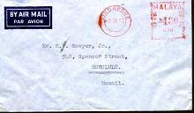 cover bearing $1.00 meter -- addressed to Honolulu, Hawaii -- CDS 2Feb53 --
