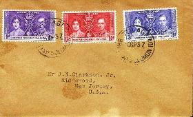 1937 -- Registered cover bearing "Coronation Issue of 1937"