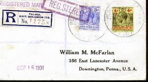1938 -- Registered cover from Tulagi bearing "Coronation